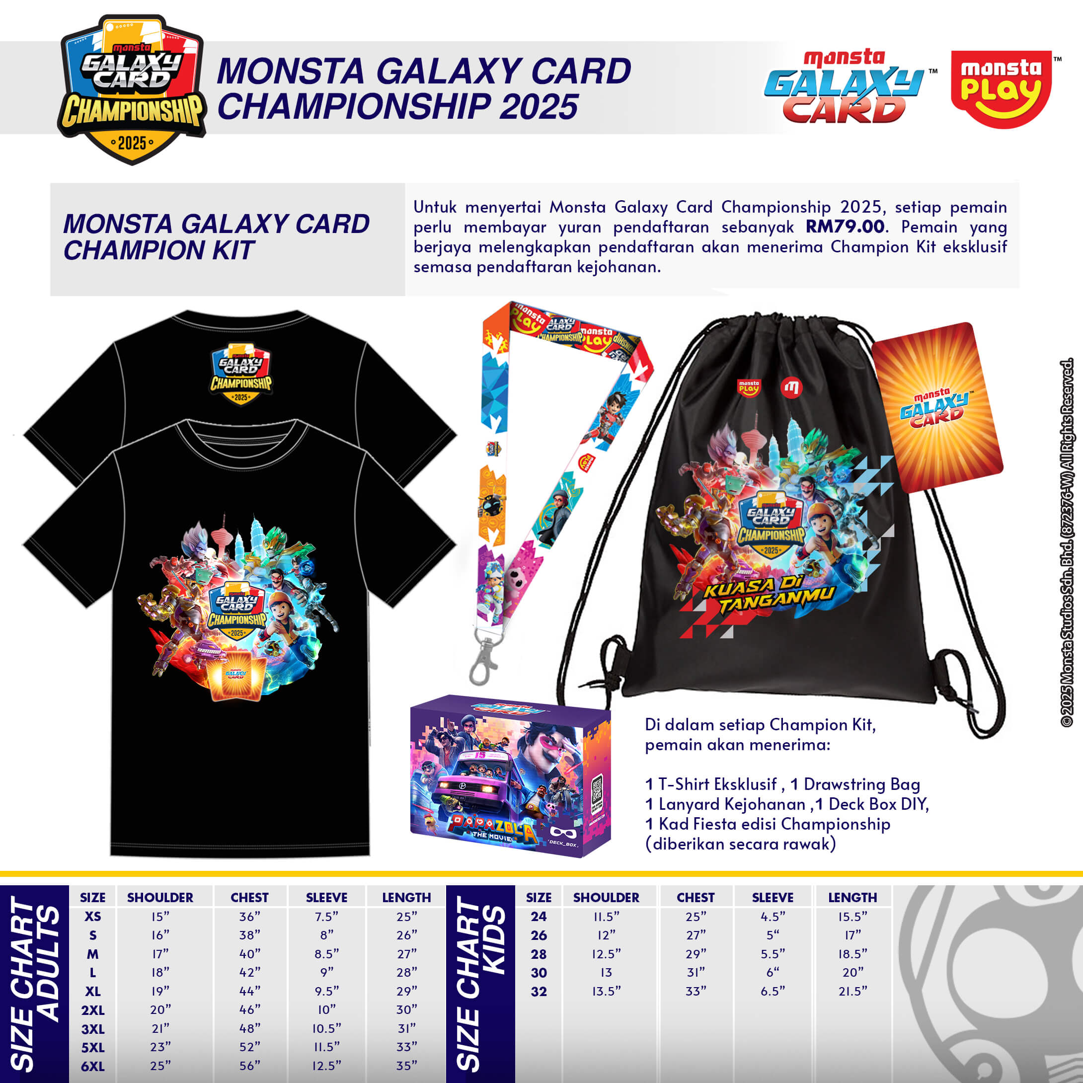- Pemain yang berjaya melengkapkan pendaftaran akan menerima Champion Kit eksklusif semasa pendaftaran / pengesahan kehadiran di hari kejohanan